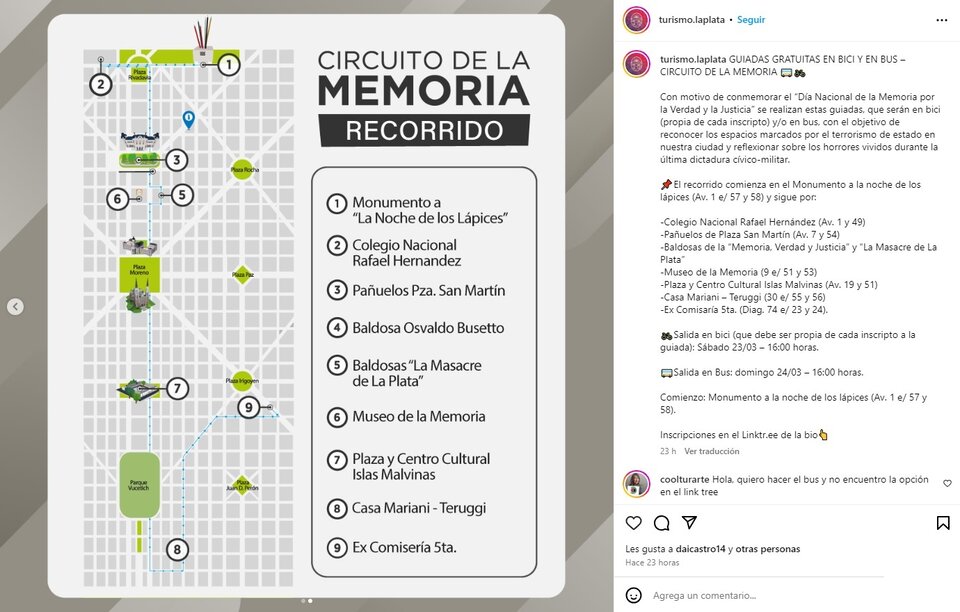 El Municipio de la Plata organiza una actividad especial por el Día Nacional de la Memoria. (Imagen: captura de pantalla Instagram)