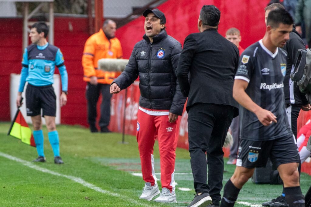 El DT interino de Argentinos, se mostró muy activo todo el partido