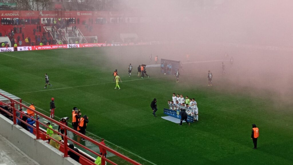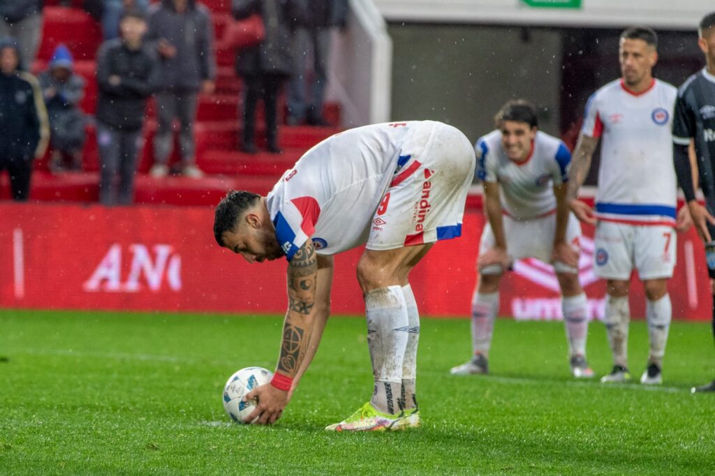 El partido, que se jugó con cancha mojada y de a ratos con lluvia, estaba cerrado hasta que el árbitro Germán Delfino a los 34 minutos pitó penal para Argentinos por un agarrón en un corner a Luciano Gondou.