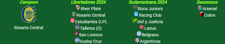 Campeón de la Copa de la Liga, clasificados a las copas 2024 y descensos. Fuente: Promiedos