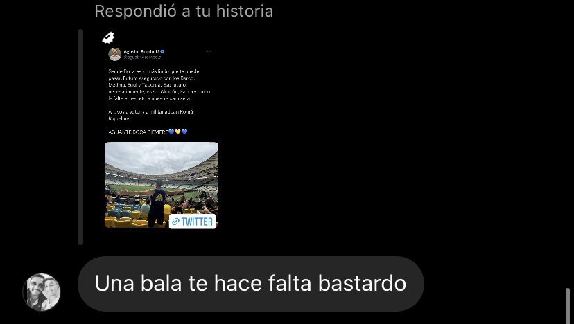 “Una bala te hace falta bastardo”, le escribió un usuario de la red X. “Con un fierro en la cabeza te agarraría pendejo bastardo”, dice otro. Todos incluyen alguna foto de Rombolá tomada de sus redes sociales.